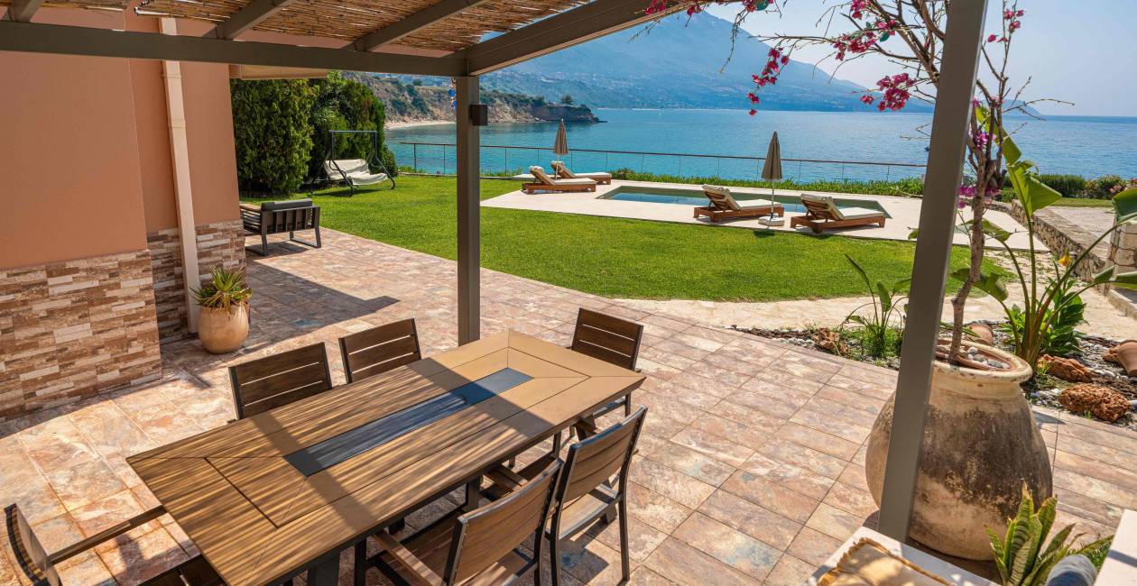 This lovely 3-bedroom, 120 sqm villa, provides accommodation for up to 6 guests. Located directly on the seafront, overlooking blue crystal clear waters and sandy shores, has direct access to the sea and is a cost-effective holiday option for families with children or a romantic getaway for couples and honeymooners.